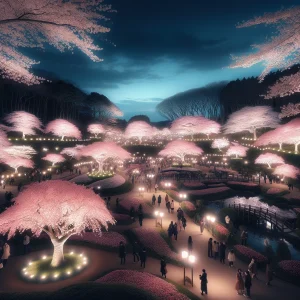 夜になるとライトアップされた桜は一段と幻想的な雰囲気を演出します。わたしは特にこの時間帯がお気に入りで、昼間とは異なる美しさに心打たれます。